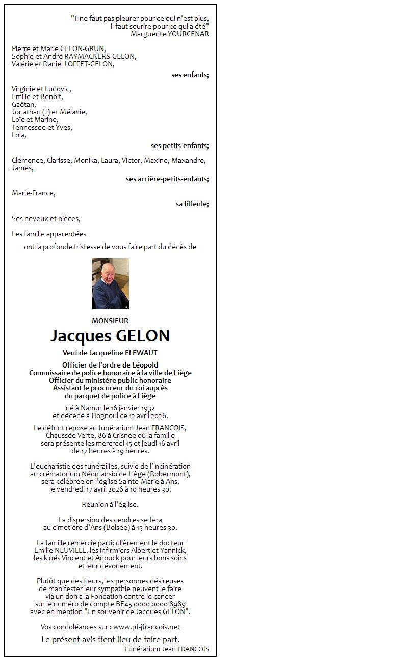 Avis de décès de Monsieur Jacques GELON