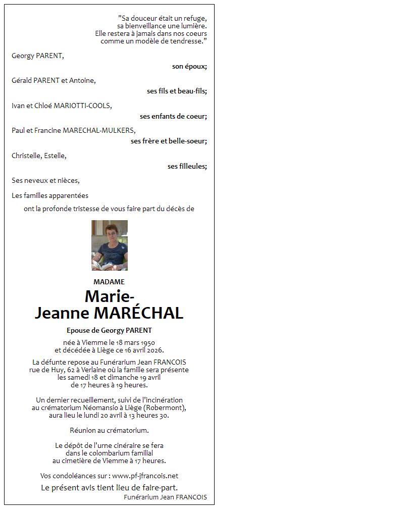 Avis de décès de Madame Marie-Jeanne MARÉCHAL
